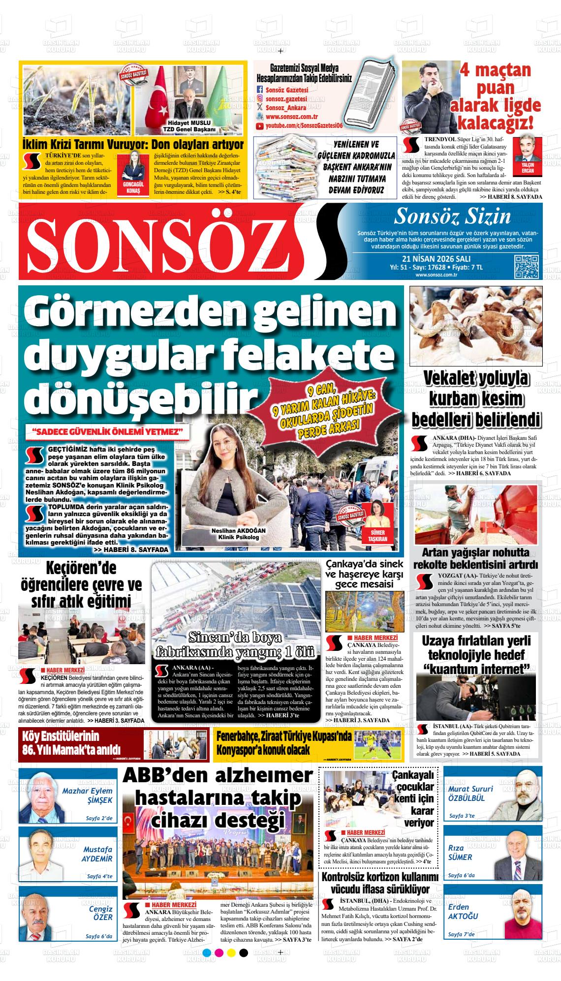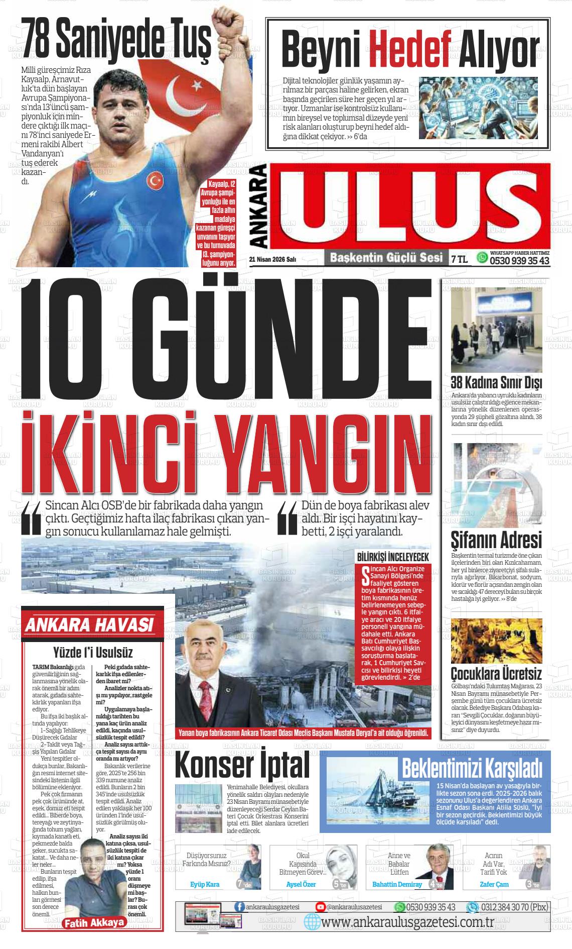 Ankara Yerel Gazeteleri 21 Nisan 2026, Salı Günü Manşeti