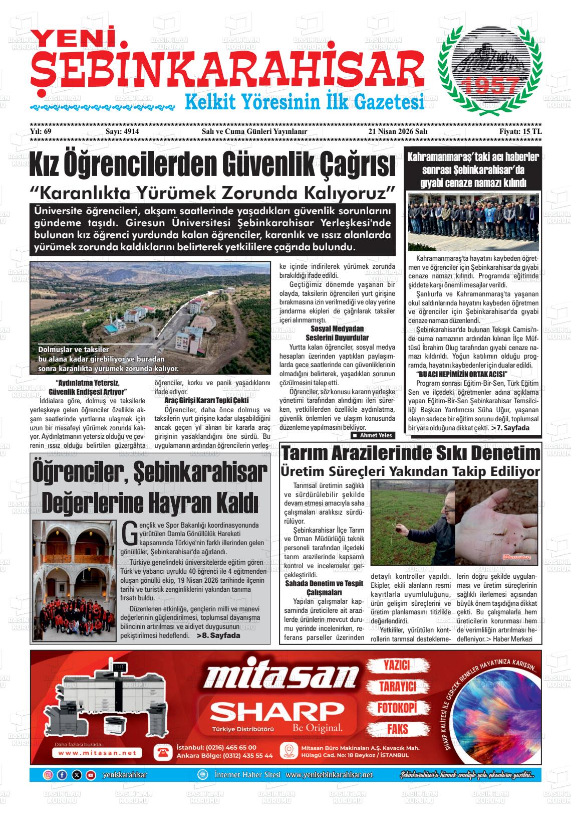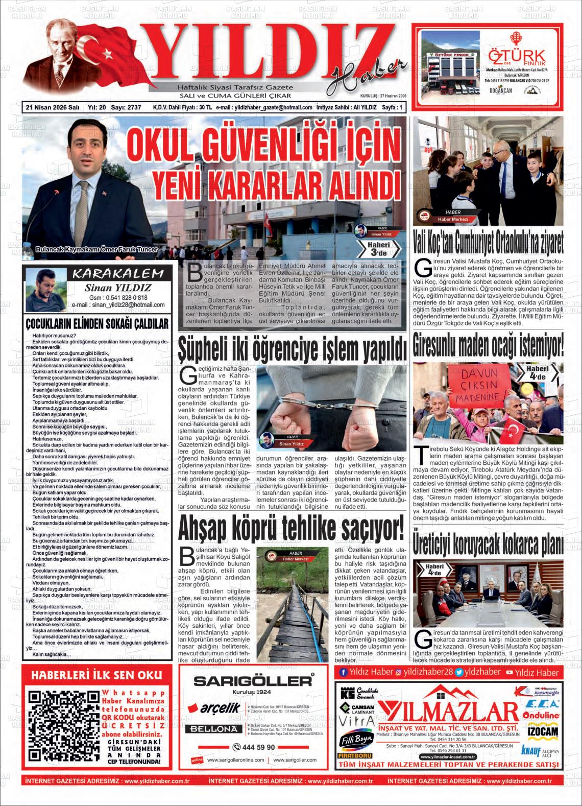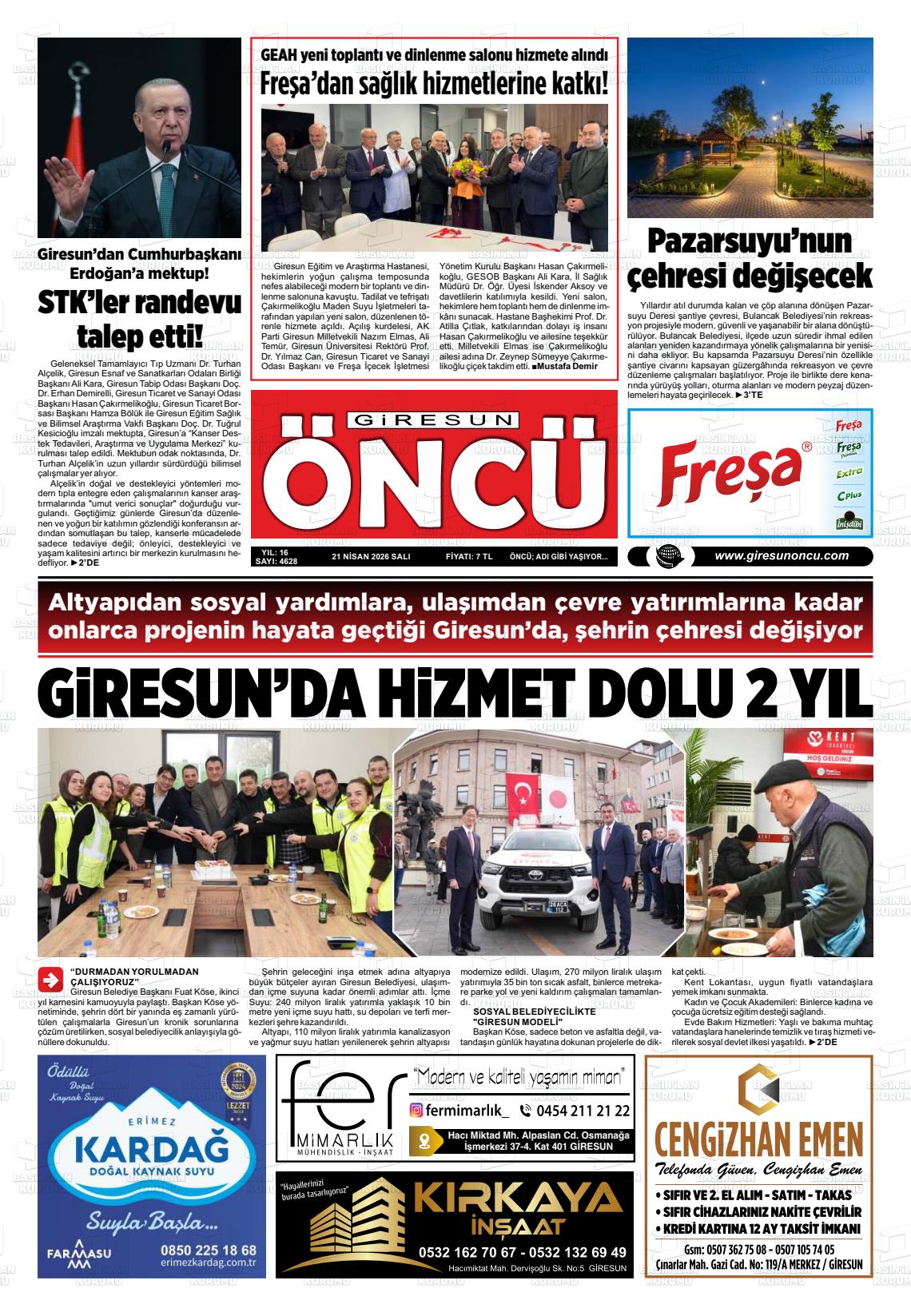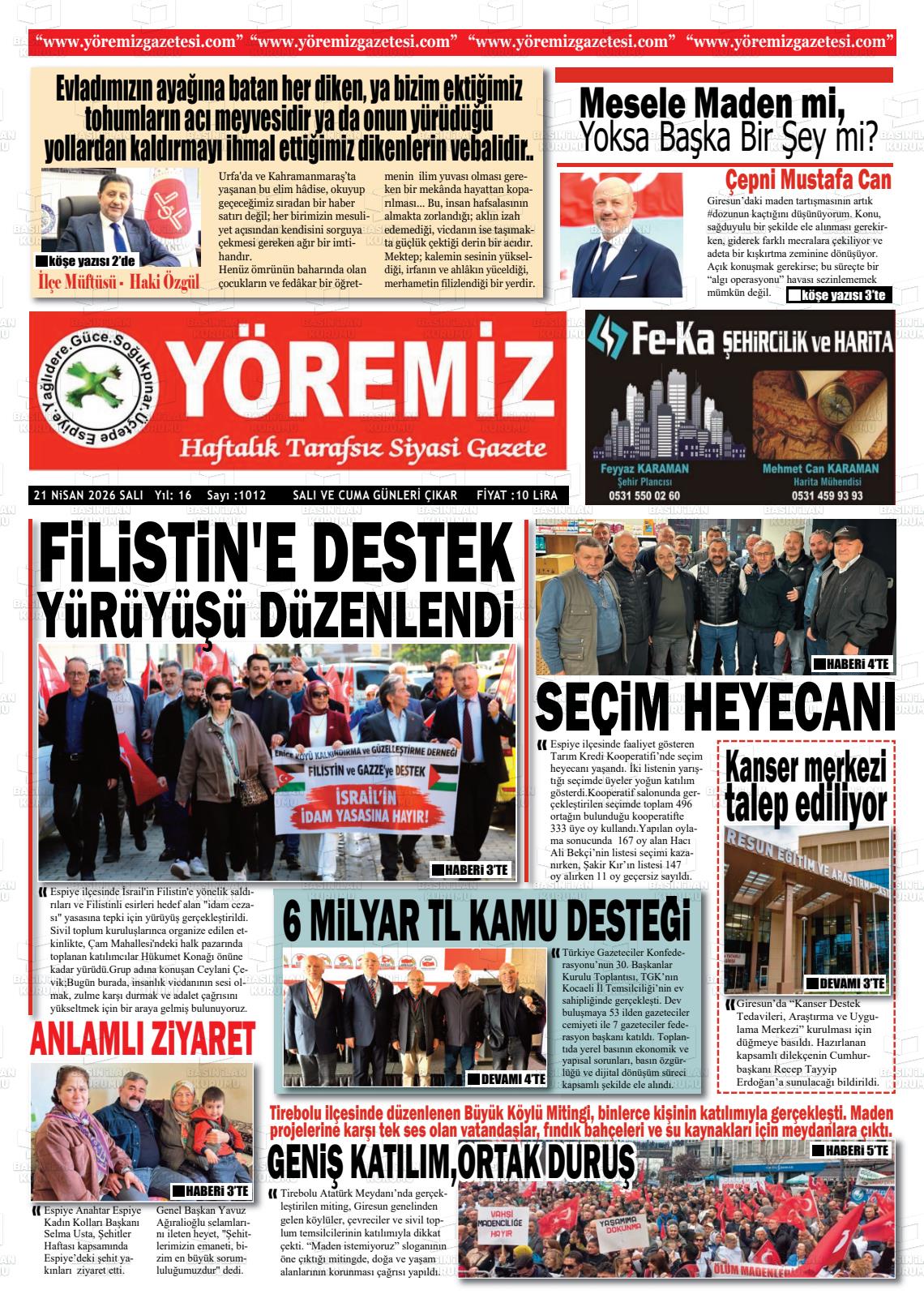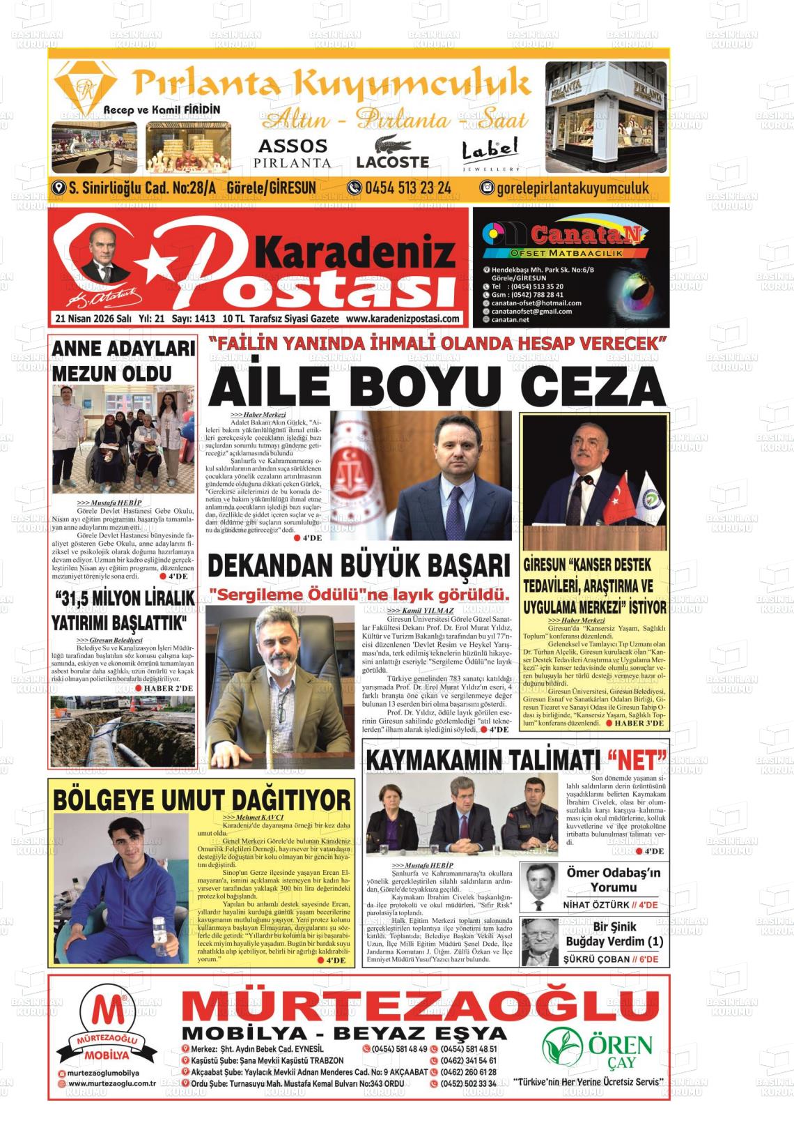 Gİresun Yerel Gazeteleri 21 Nisan 2026, Salı Günü Manşeti
