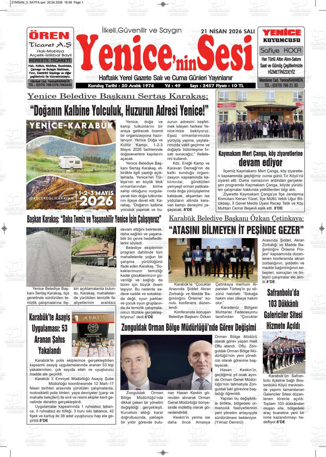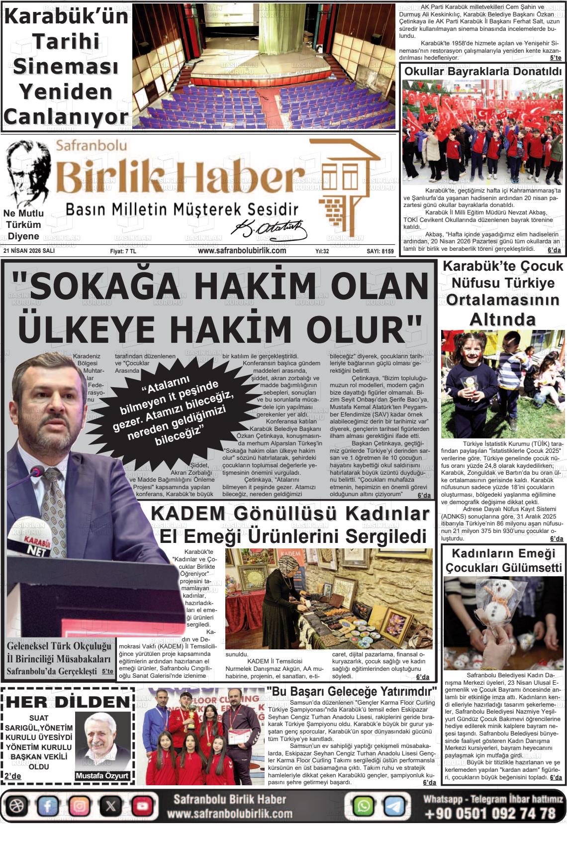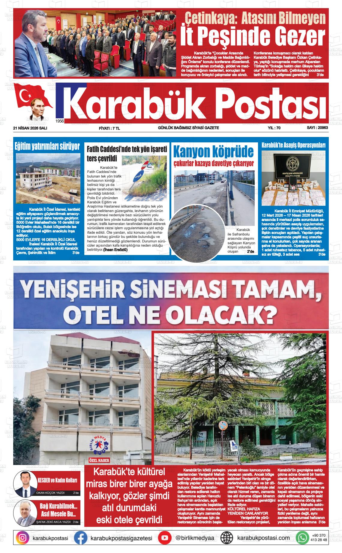 Karabük Yerel Gazeteleri 21 Nisan 2026, Salı Günü Manşeti