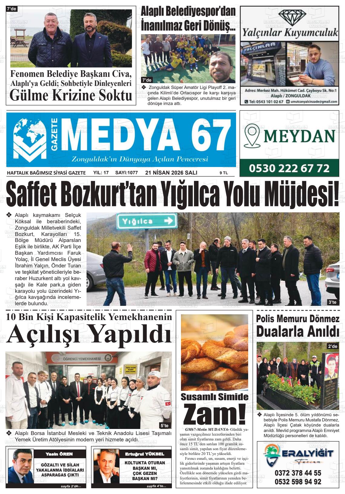 Zonguldak Yerel Gazeteleri 21 Nisan 2026, Salı Günü Manşeti